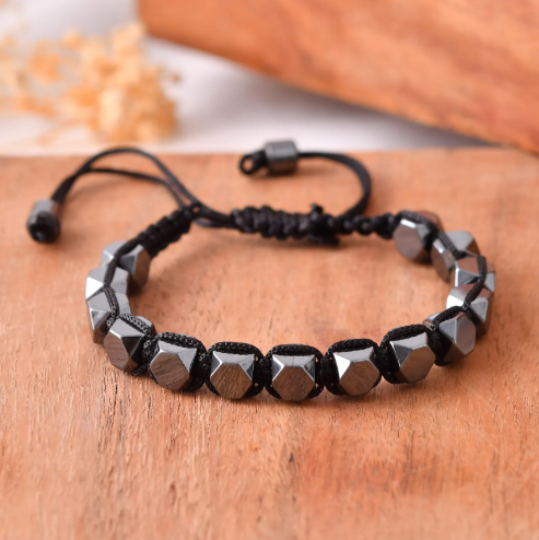Adjustable Men's Bracelet with Hematite Beads Cross Pendant